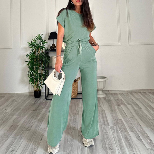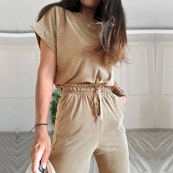 This comfortable and effortless two-piece set is the epitome of casual chic, offering a versatile and stylish option for everyday wear.