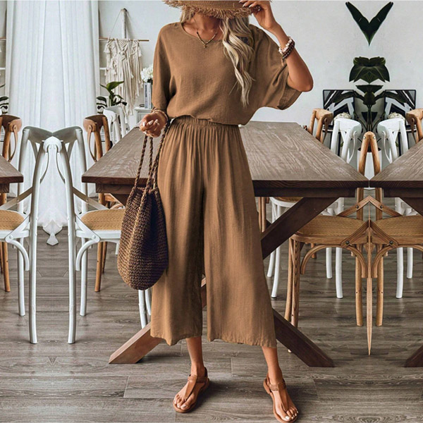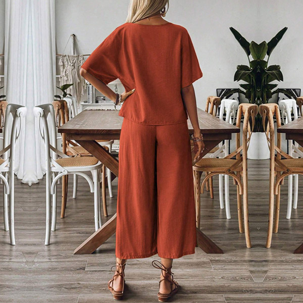 Stay comfortable and stylish with this casual two-piece set! This set includes a relaxed-fit shirt and matching pants, perfect for effortless everyday wear. Whether you're lounging at home, running errands, or meeting friends, this set offers both comfort and style.