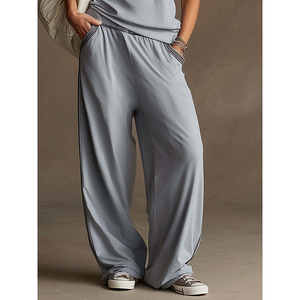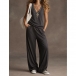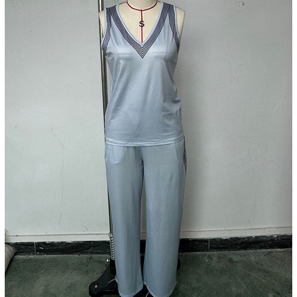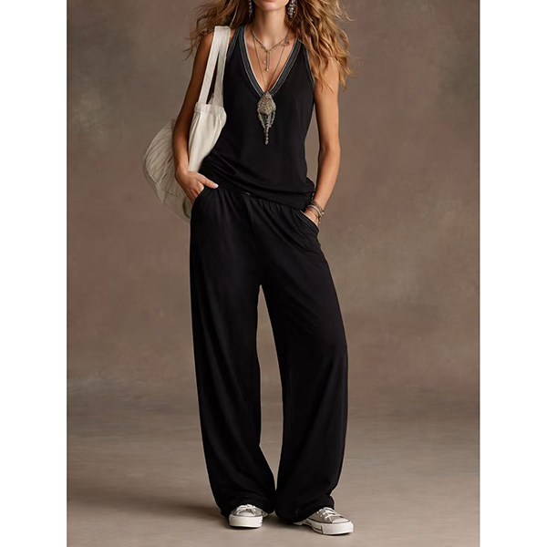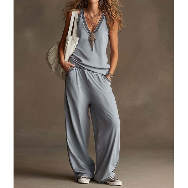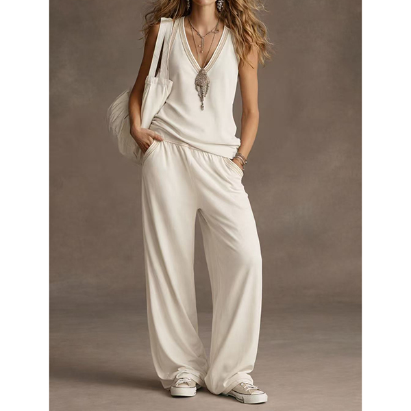 Casual Two-piece Set Consist of V-neck Sleeveless Shirt and Wide-leg Pants