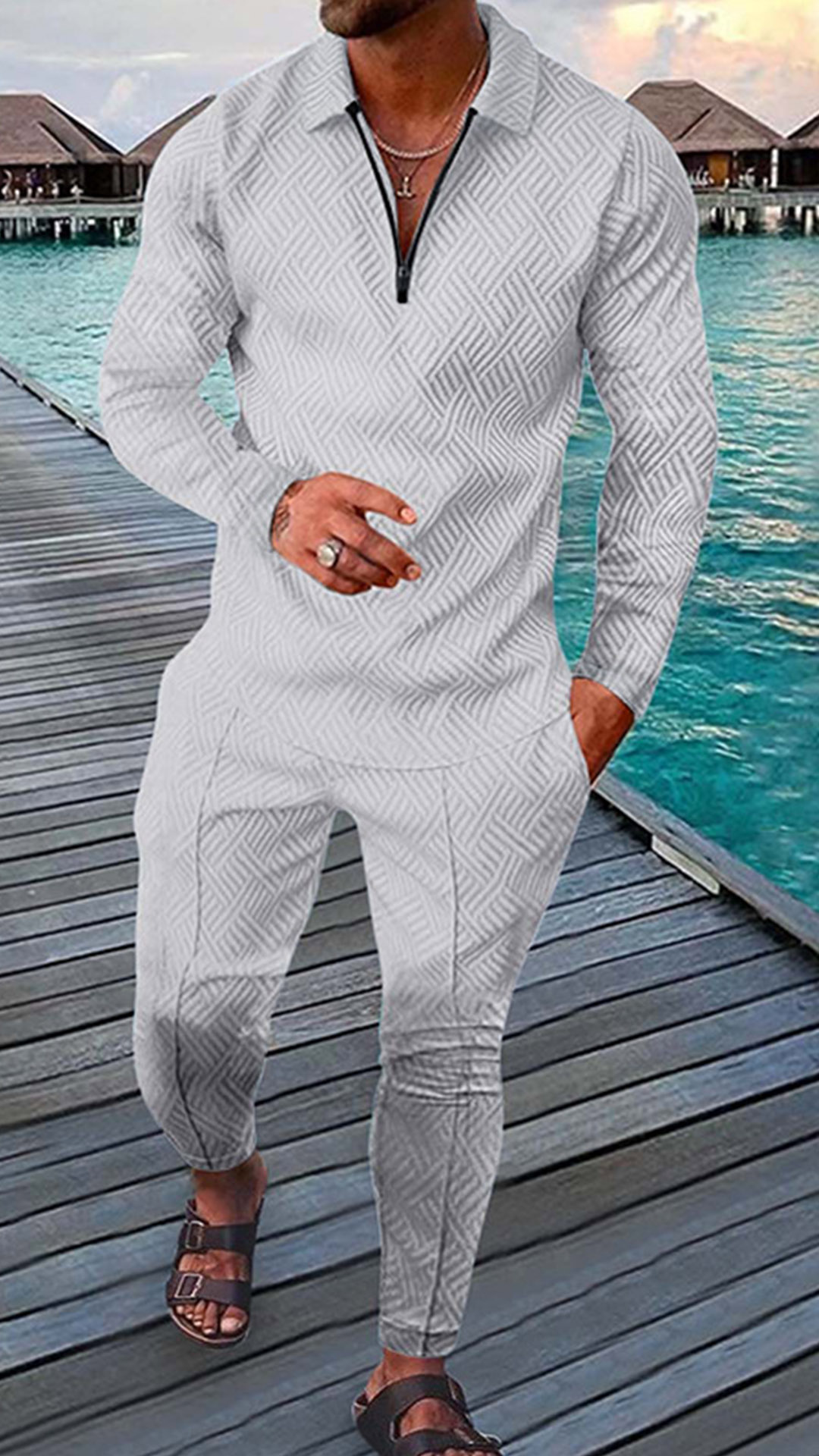 Casual Two-piece Set for Men Consist of Zipper Stand Collar Shirt and Pants