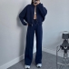 Casual Two-piece Sport Set Consist of Sweatshirt Jacket and Straight-cut Sweatpants
