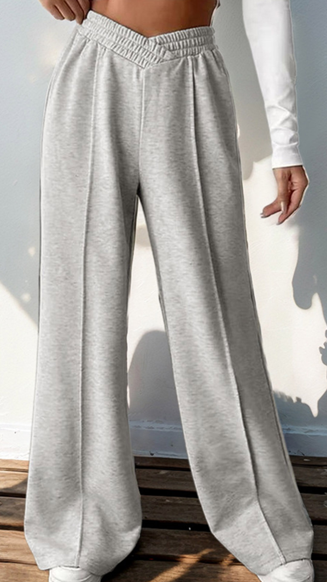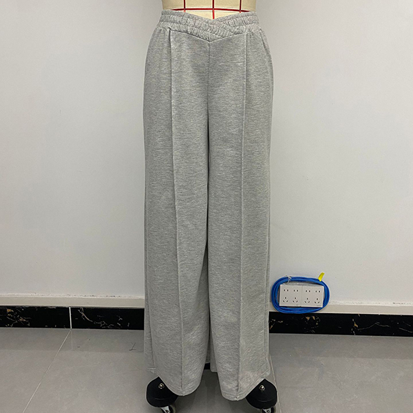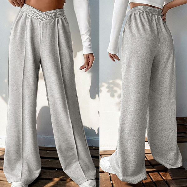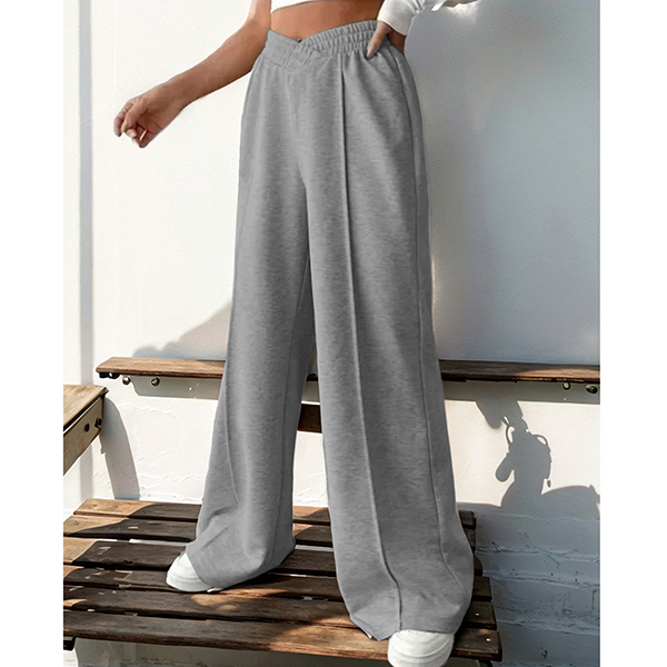 Look at this gray pants! Featuring a comfortable elastic waistband with a flattering V-shaped front detail and wide-leg design, these casual trousers are the perfect blend of style and comfort.