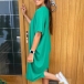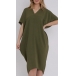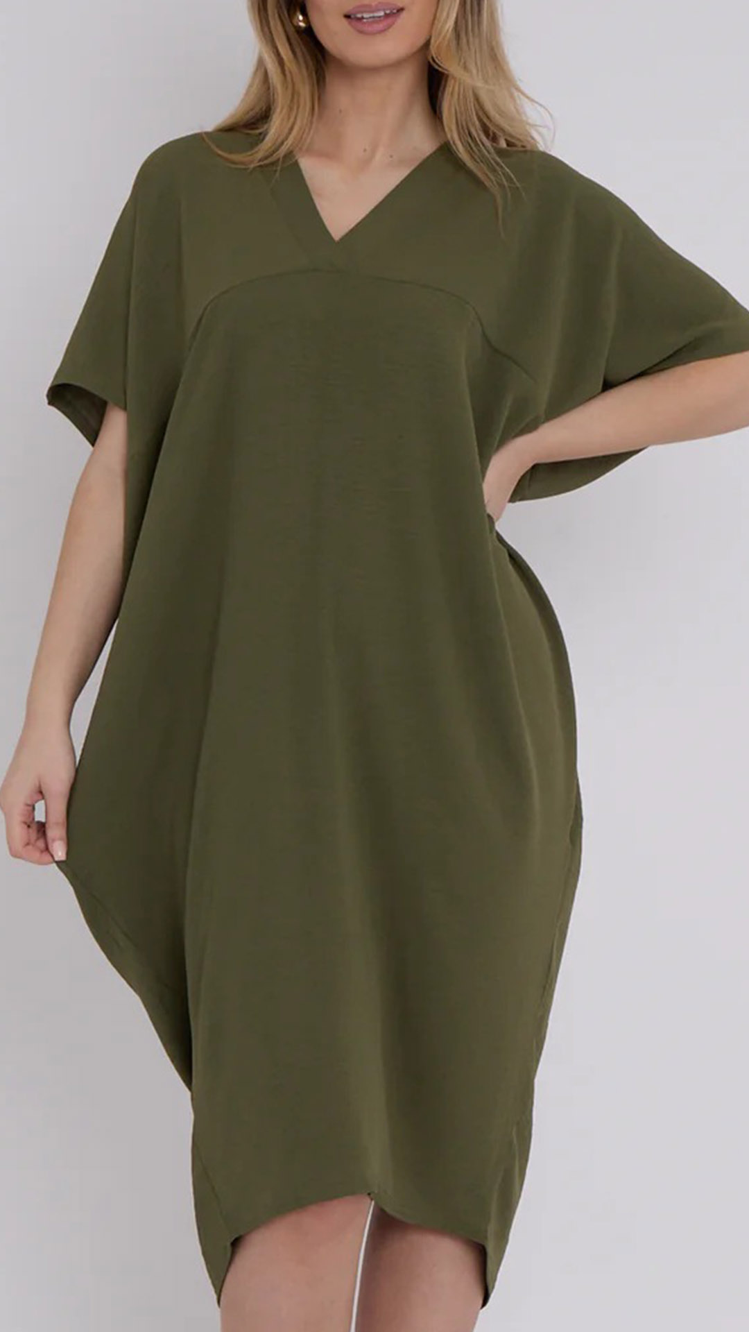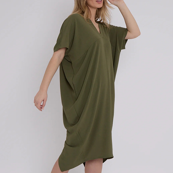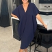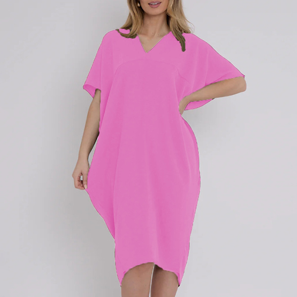 Casual V-neck Batwing Short Sleeve Back Slit Dress