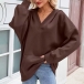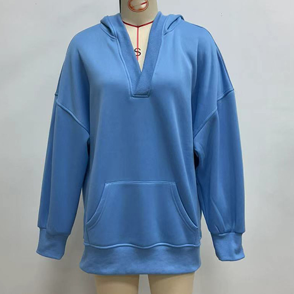 This relaxed sweatshirt combines casual comfort with distinctive design elements. The V-neck creates flattering neckline definition whilst batwing sleeves add dramatic silhouette with effortless draping. The hooded design brings sporty appeal with cozy coverage whilst the batwing sleeves create relaxed movement and comfortable fit. Perfect for weekend lounging, casual outings, or comfortable layering during transitional weather.