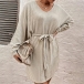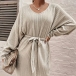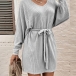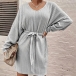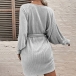 Casual V-neck Batwing Sleeve Self-tie Ribbed Dress