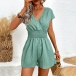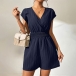 Casual V-neck Cap Sleeve Back Bowknot Romper
