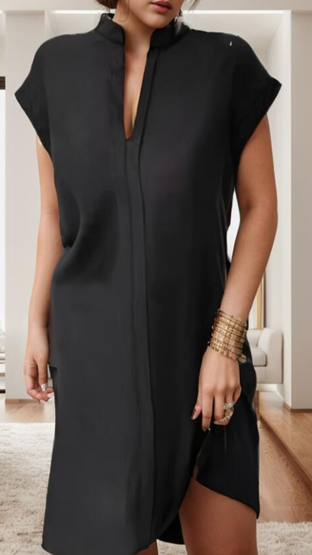 This effortless V-neck dress offers a relaxed, casual silhouette perfect for everyday wear. Multi-colors available.