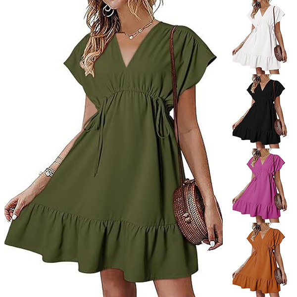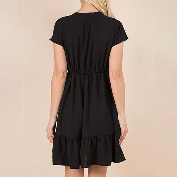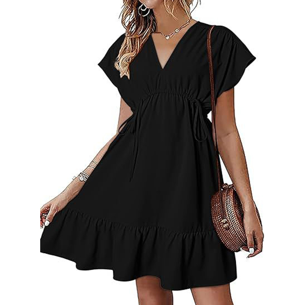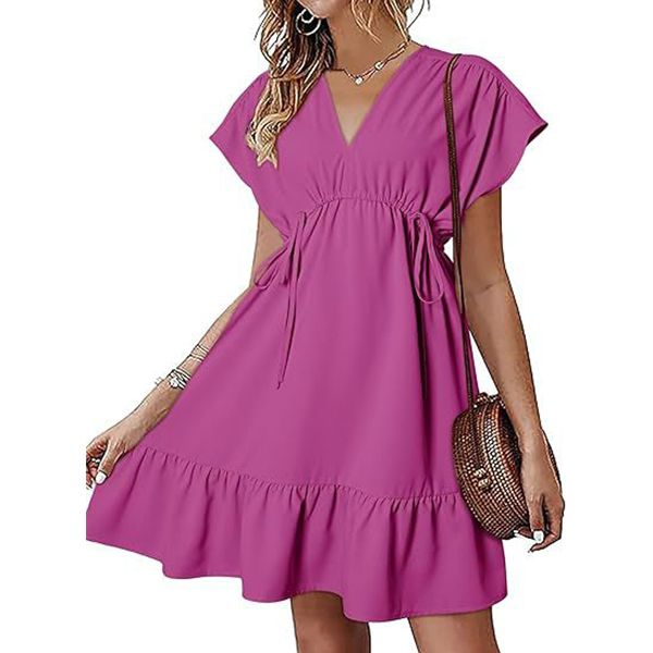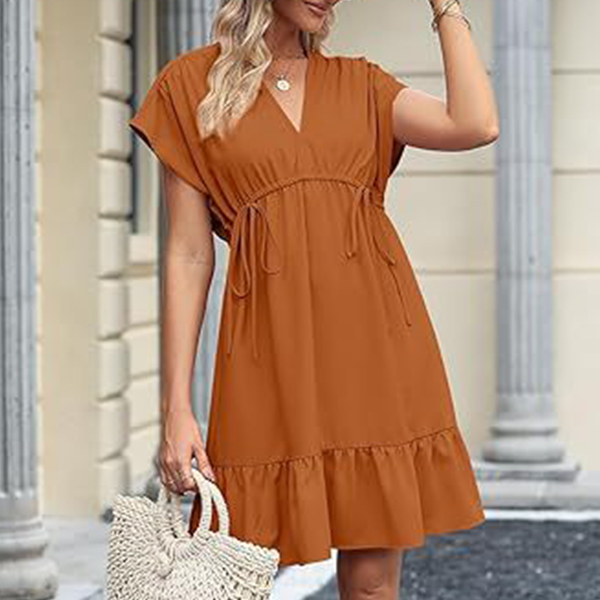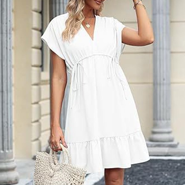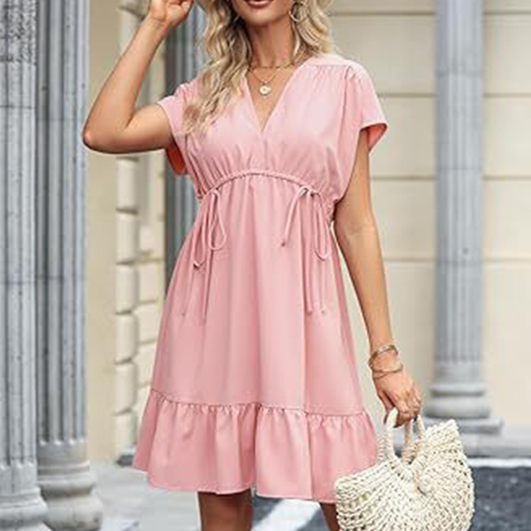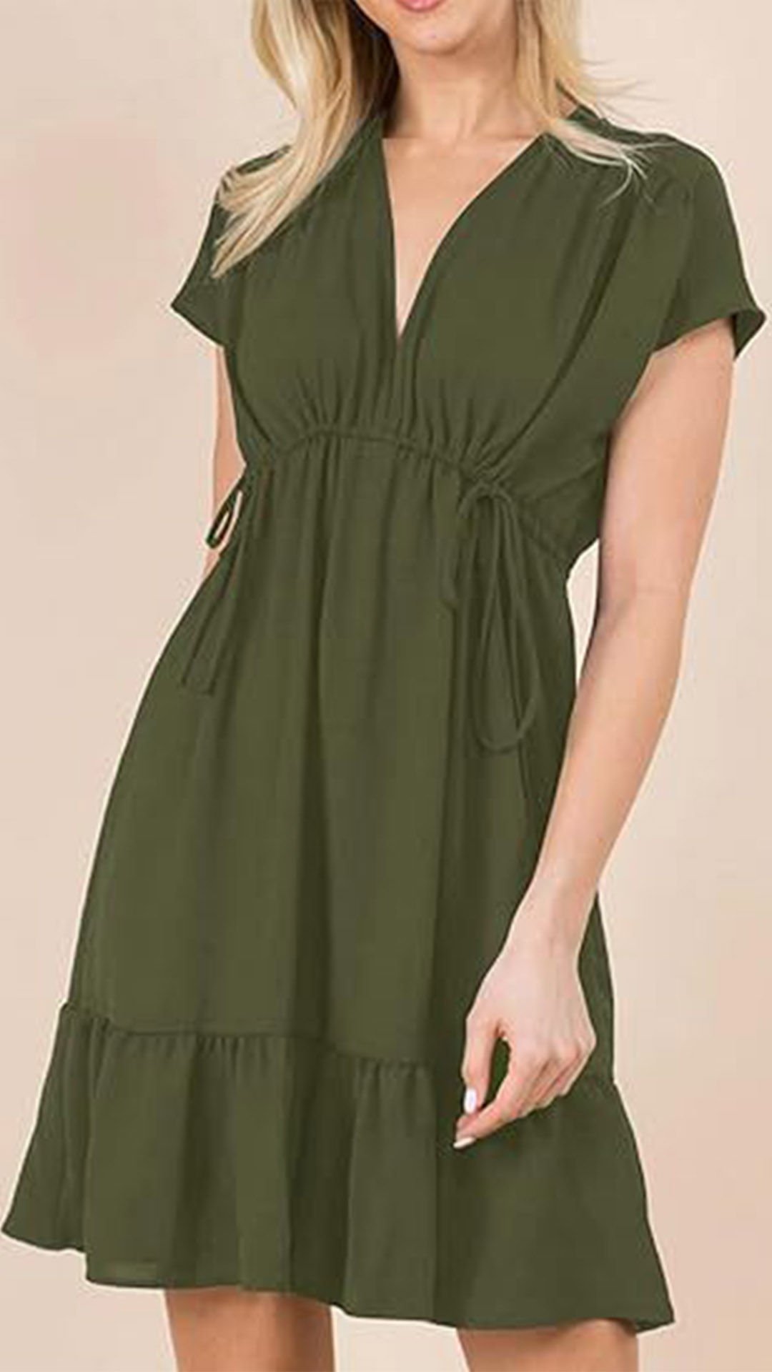 Casual V-neck Cap Sleeveless Side Drawstring Mini Dress