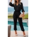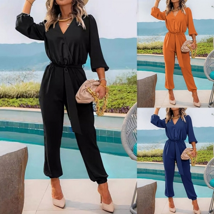 This versatile and comfortable jumpsuit combines a flattering v-neckline, elbow-length sleeves, and a self-tie waist detail to create a stylish and relaxed look that is perfect for casual, everyday wear. Multi-colors avabile.