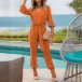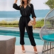 Casual V-neck Elbow-sleeve Self-tie Waist Jumpsuit