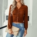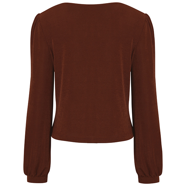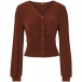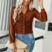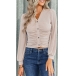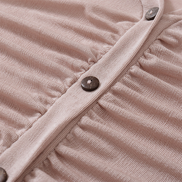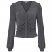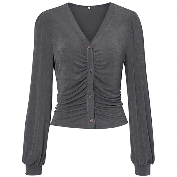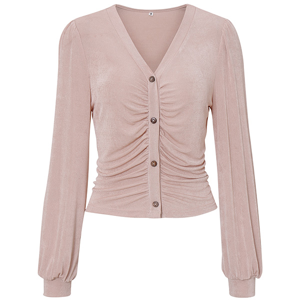 Casual V-neck Long Sleeve Ruched Buttoned Crop Knitted Shirt