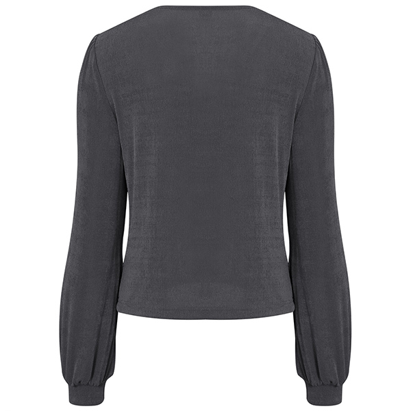 This shirt features a classic V-neck, and long sleeve, while the cropped length and button-down ruched front create a flattering silhouette that looks great with jeans or a skirt.