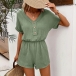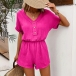 This is a versatile and trendy romper that exudes effortless charm and sophistication. It features V-neck, short sleeve and front button decoration. Perfect for a brunch date, a shopping trip, or a casual outing with friends.