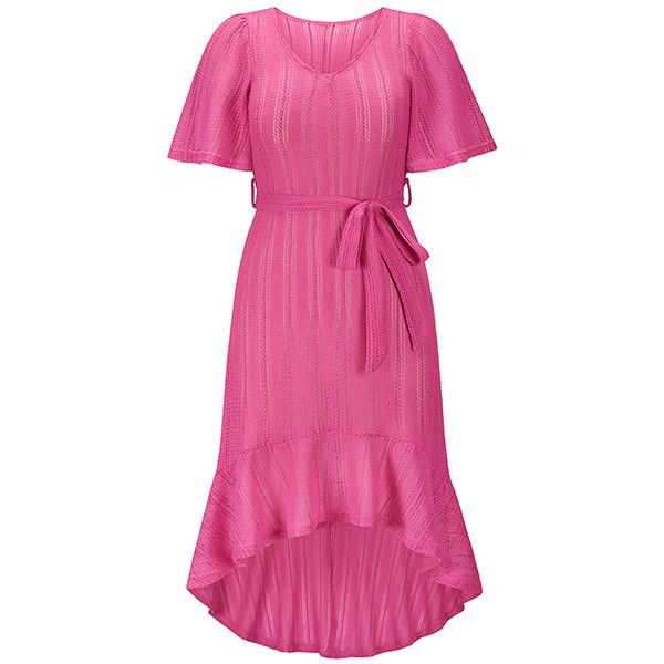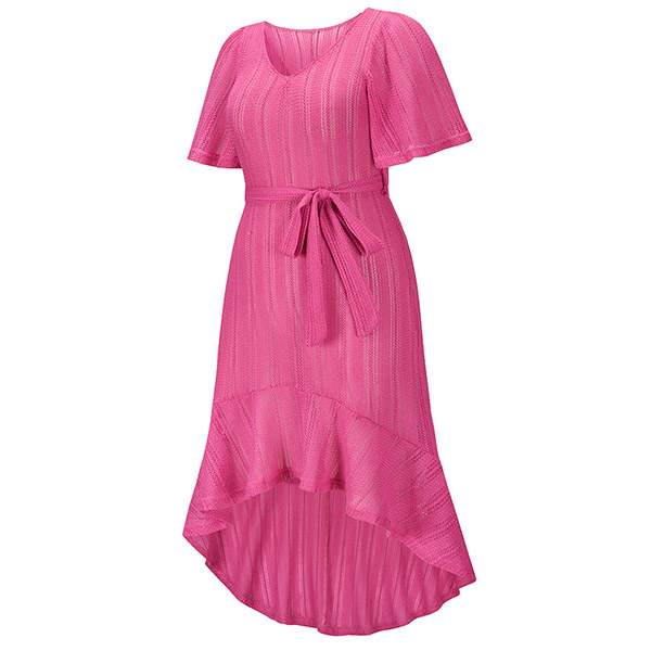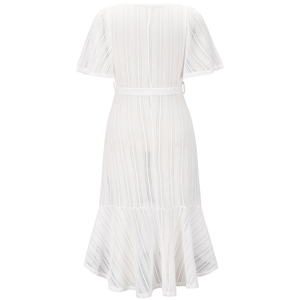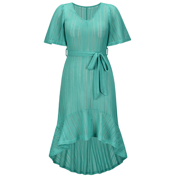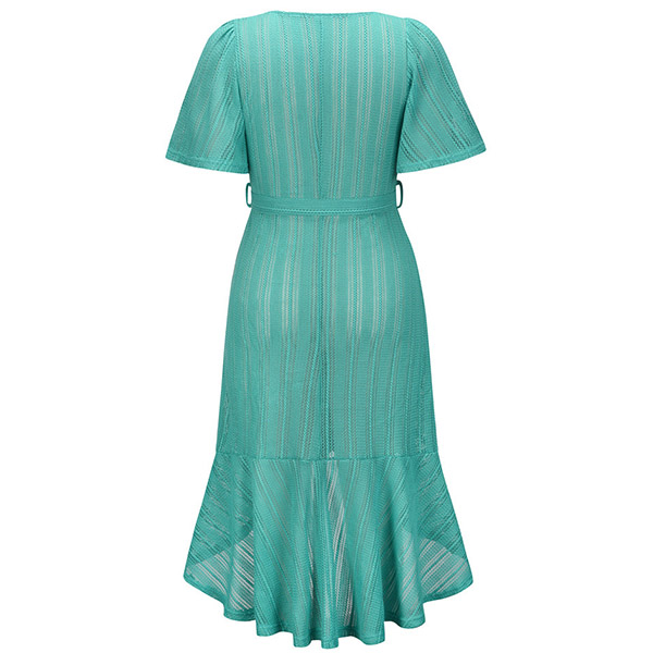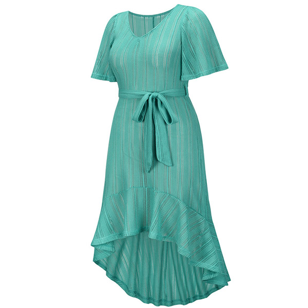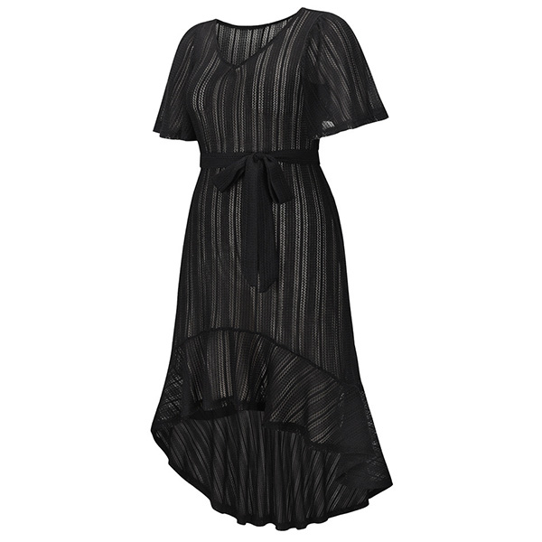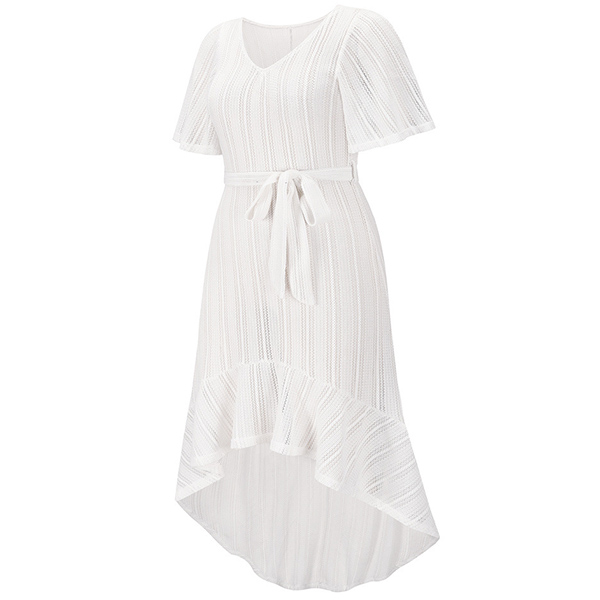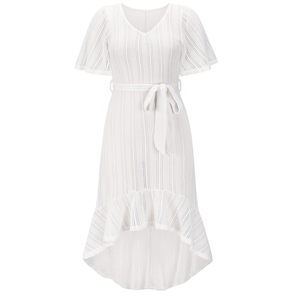 Casual V-neck Short Sleeve High-low Hemline Swim Cover-up Dress