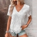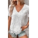 The casual nature of this shirt makes it versatile and easy to style. The lace detailing on the shirt adds a delicate and romantic touch. It creates a beautiful texture and adds visual interest to the overall look.