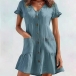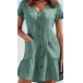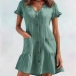Casual V-neck Short Sleeve Patch Pockets Ruffle Hemline Mini Dress