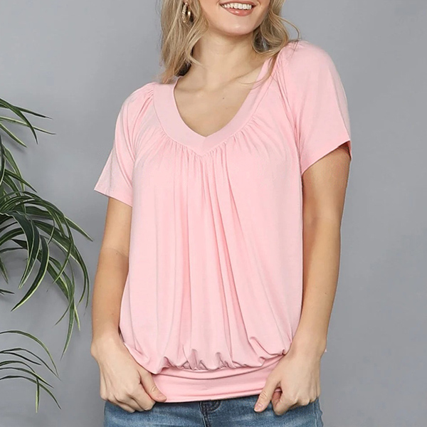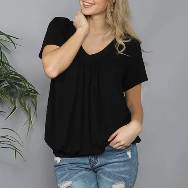 This versatile shirt features a flattering V-neckline and short sleeves, making it a perfect piece for any occasion. Dress it up with a skirt or dress it down with jeans for a casual look.