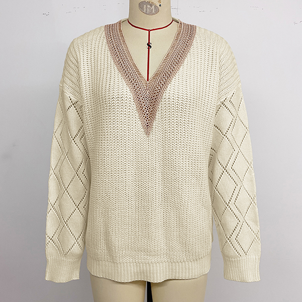 Casual V-Neckline Long Sleeve Pullover Sweater