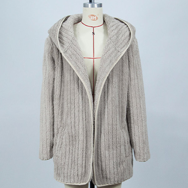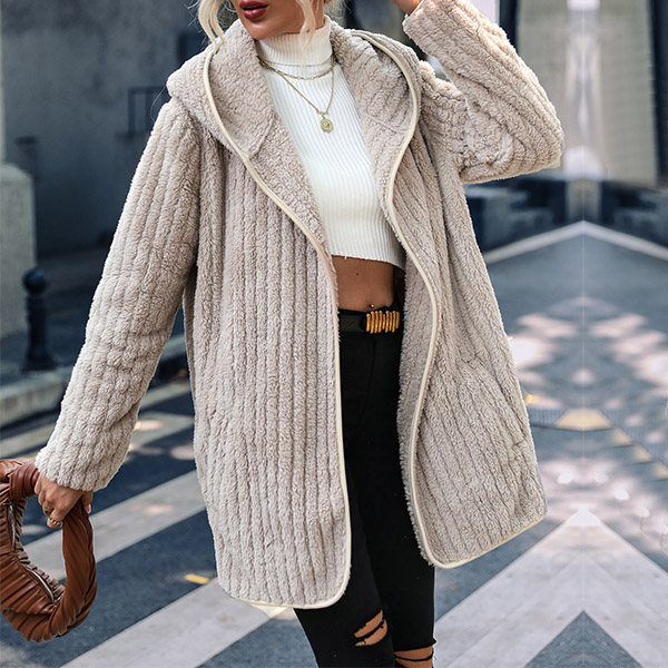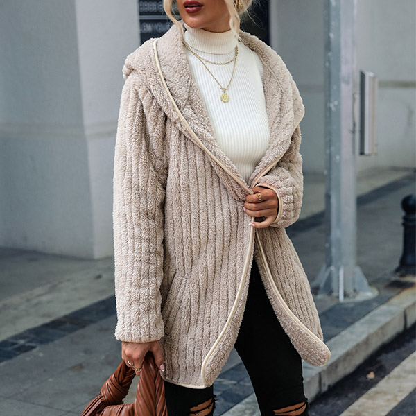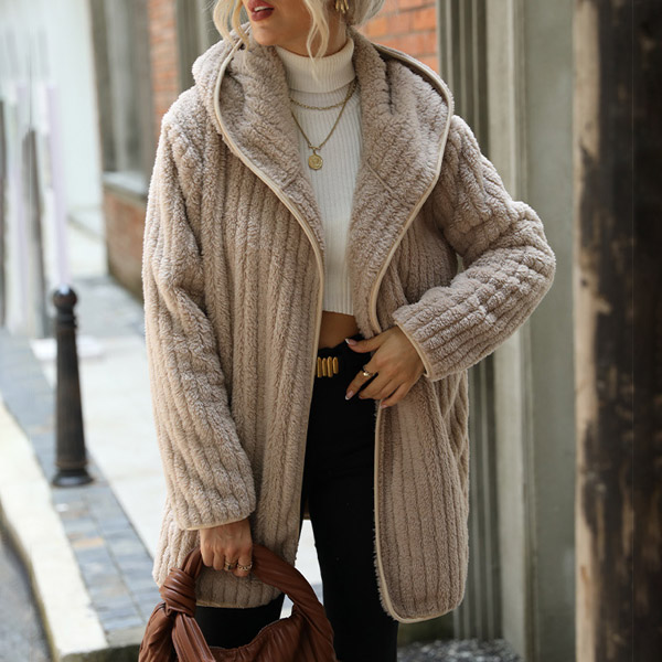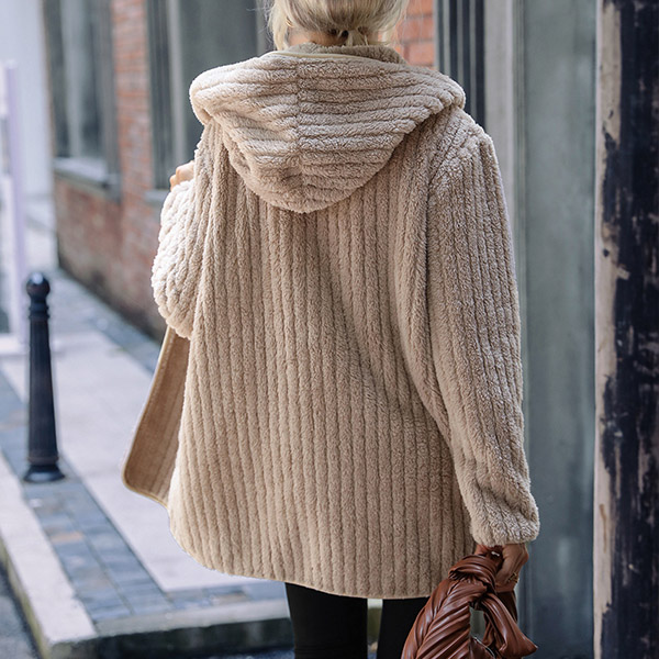 Casual Vertical Stripe Plush Hoodie Cardigan