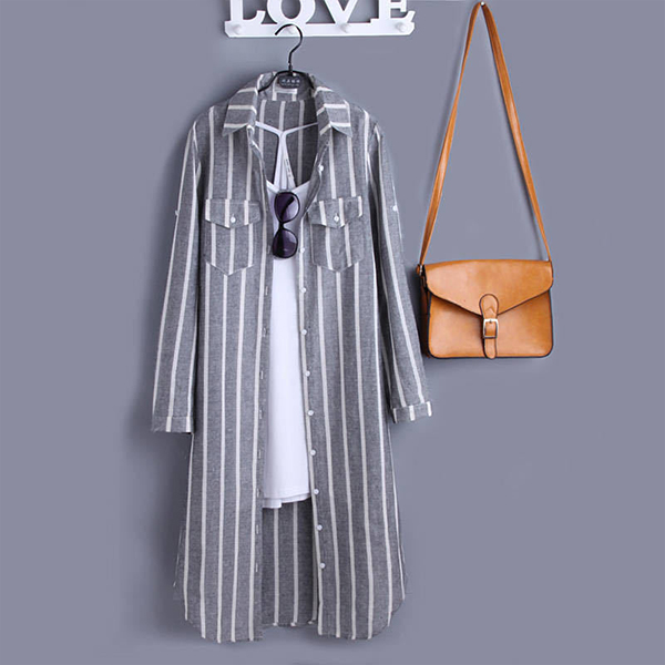 This cardigan features a vertical striped pattern, adding a touch of sophistication to your casual look. With its long sleeves and longline design, it offers both comfort and a trendy, modern aesthetic. Wanna have a try?