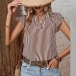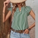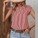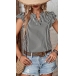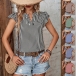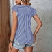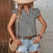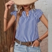 Casual Verticial Stripe Printed V-neck Ruffled Cap Sleeve Shirt
