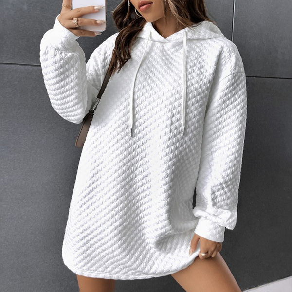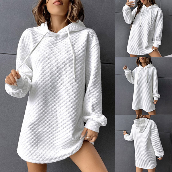 This dress features a waffle pattern that adds texture and visual interest to the design. The drawstring hood adds a casual and sporty touch, while the long sleeves provide warmth and comfort. Wanna have one?