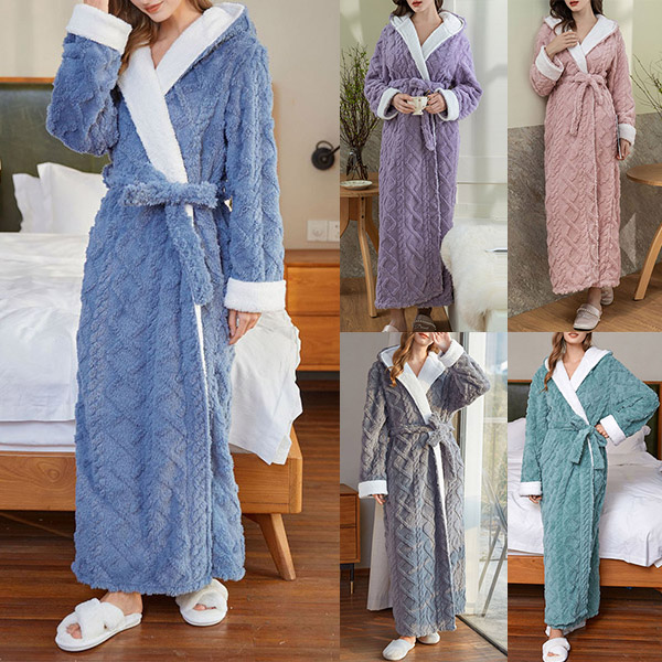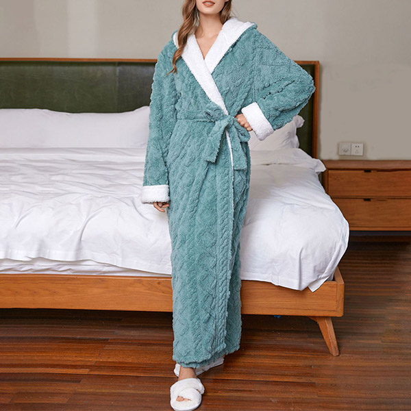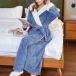Casual Warm Comfy Contrast Color Hoodied Self-tie Loungewear Robe
