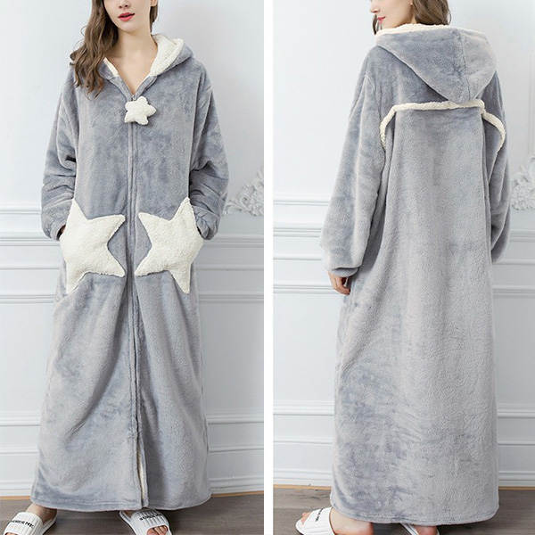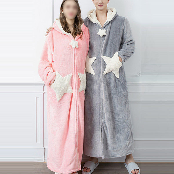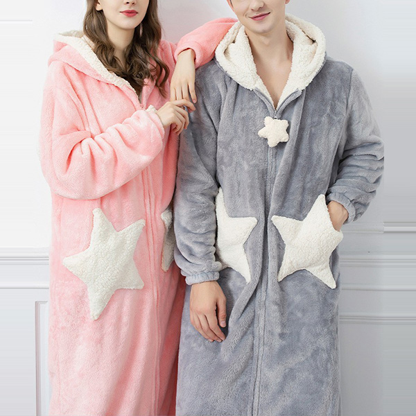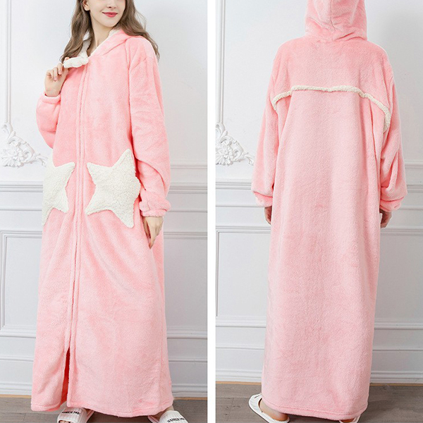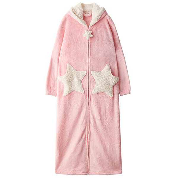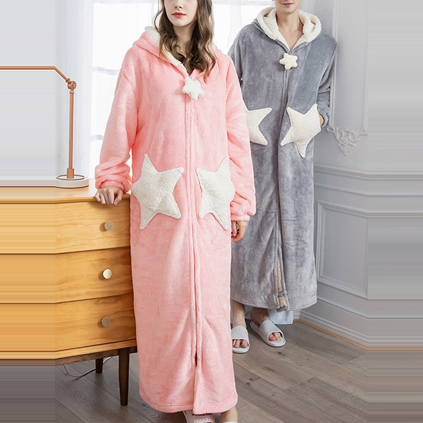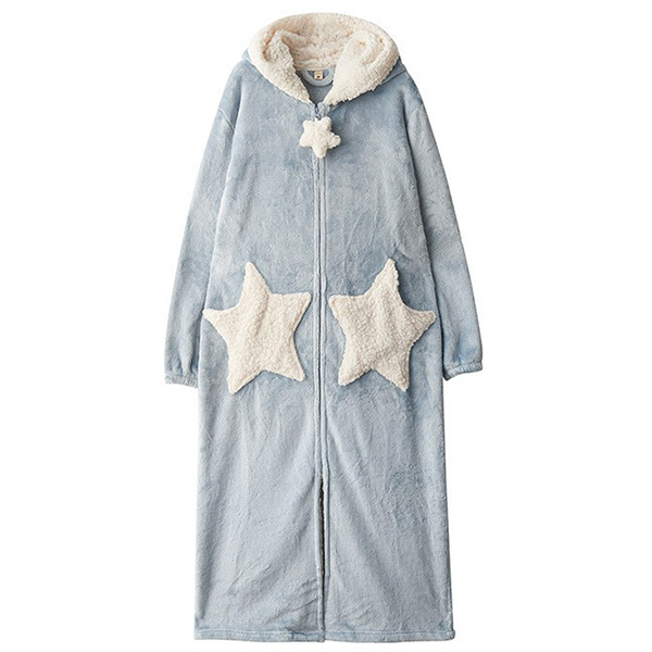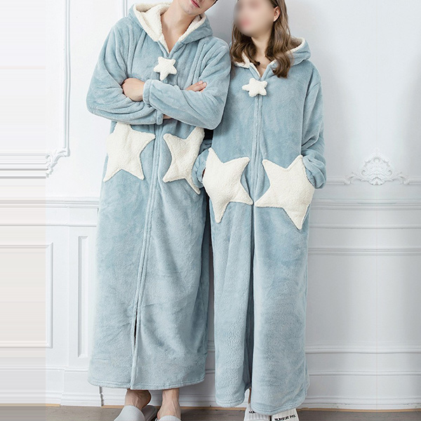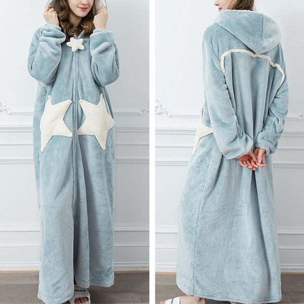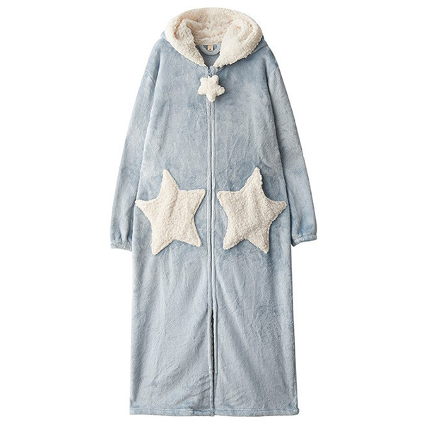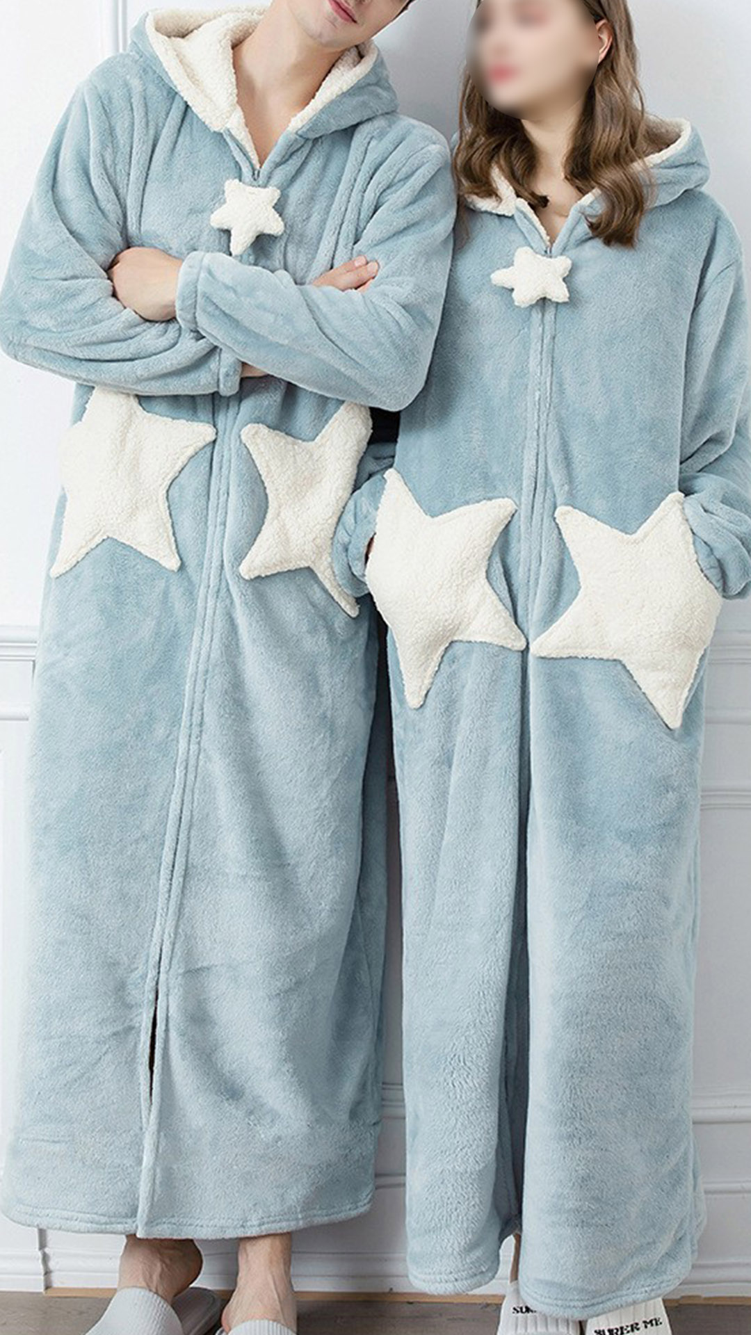 Casual Warm Star Coral Fleece Hoodie Pajamas