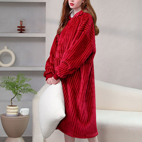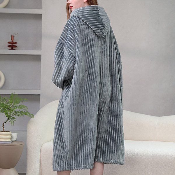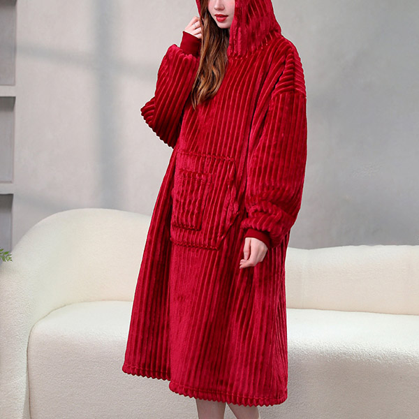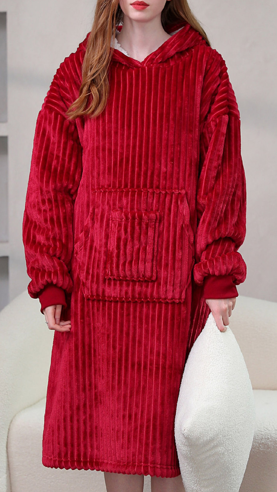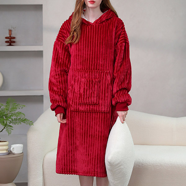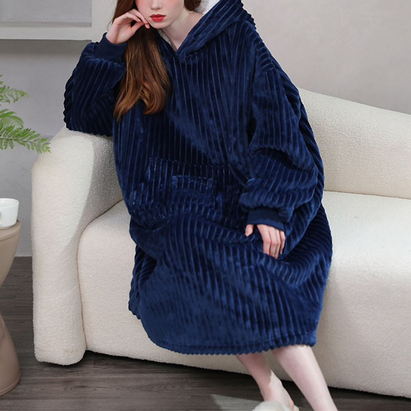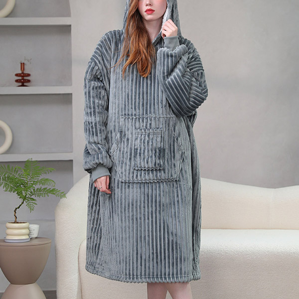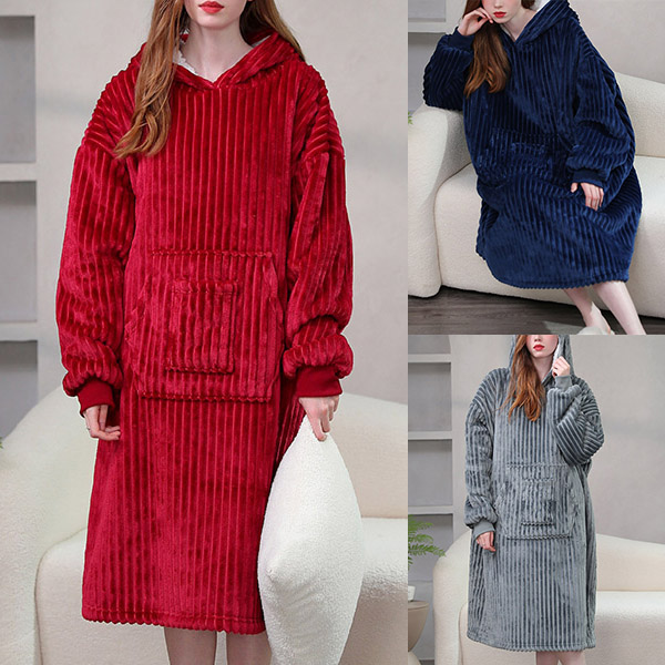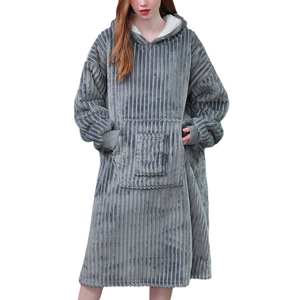 Casual Warm Vertical Stripe Long Sleeve Kangaroo Pockets Plush Lined Oversize Hoodie/TV Blanket/Loungewear Hoodied