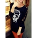 The t-shirt features a slouchy relaxed look,a round neck and batwing sleeves,white skull head print at the front centre and black lace detail.Try pairing this smart piece with denim cutoffs or pencil skirts.