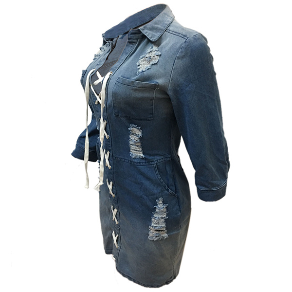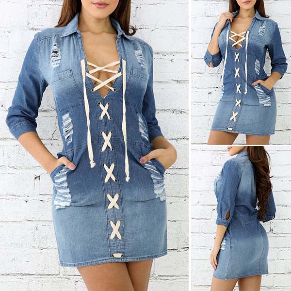 You can update your daily style with the help of this denim dress. It is styled with 3/4 sleeve,v-neck and