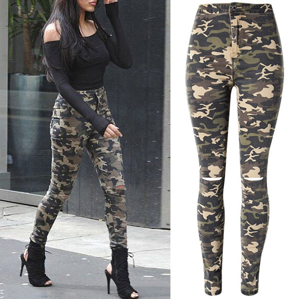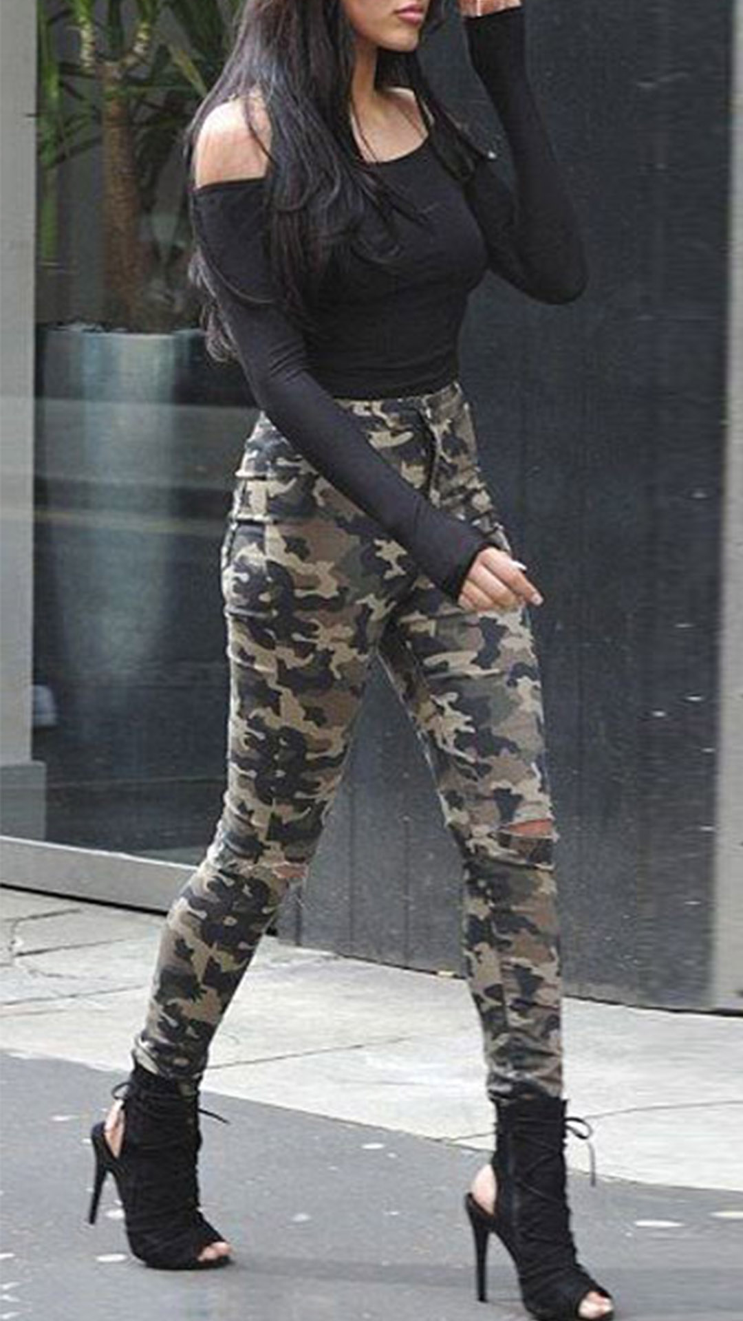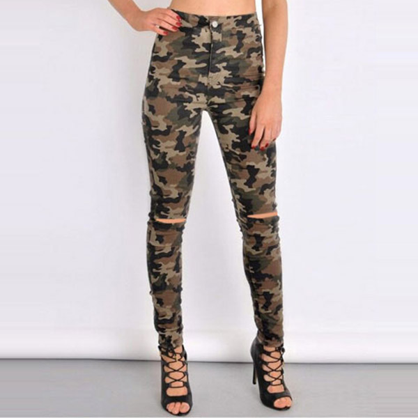 Through this pants,you not only can have a comfortable day,but also can achieve for a chic and stylish style.Camouflage printed style,designed with low-waist,a skinny silhouette and ripped details,this pants can offer you