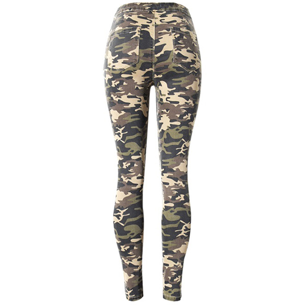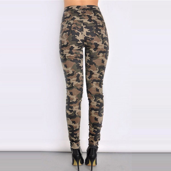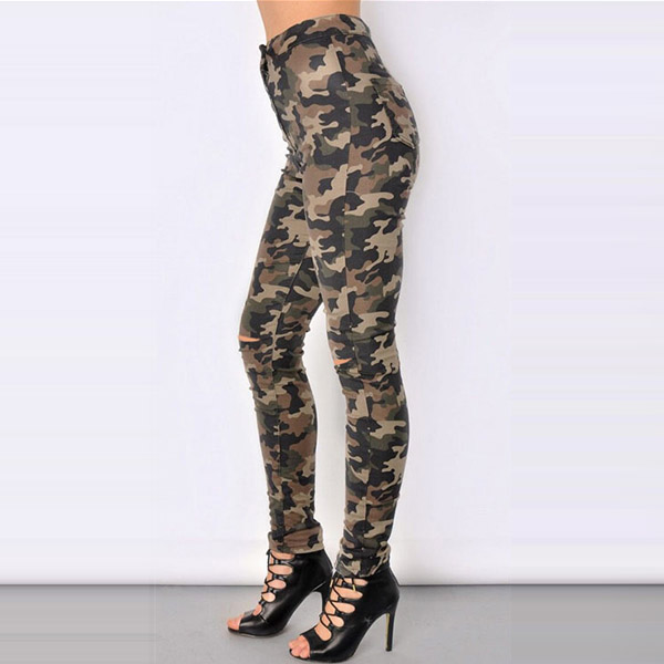 Chic Style Camouflage Printed Low-waist Slim Fit Ripped Pants