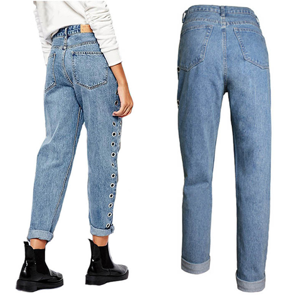 You would be attracted by this different style jeans. Crafted from soft and breathable fabric,with high waist and a relaxed-fit