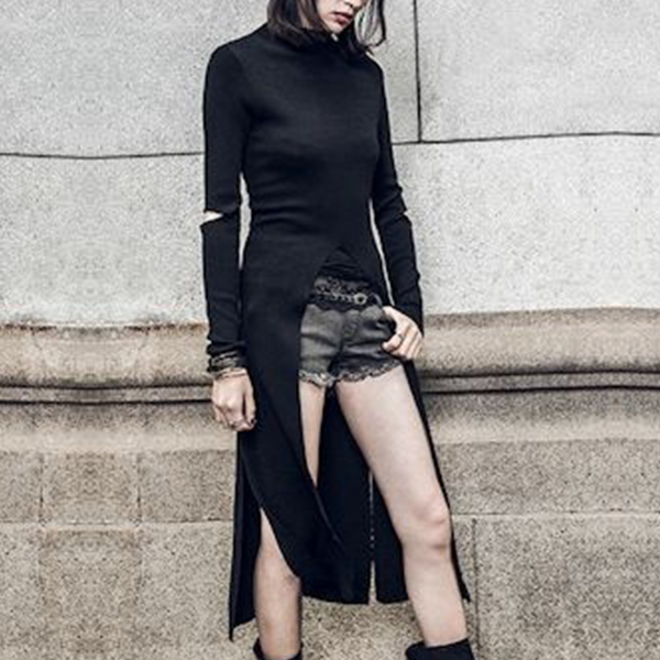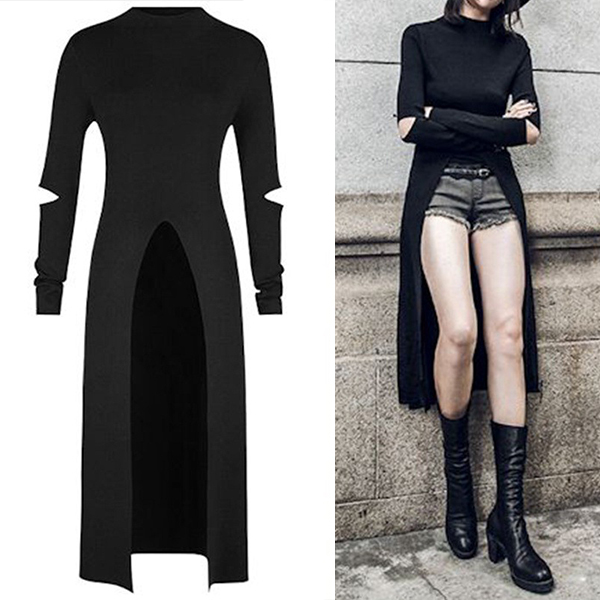 The most distinctive details? Its slit hem and hollow out design at sleeve part make this piece so appealing and unique.