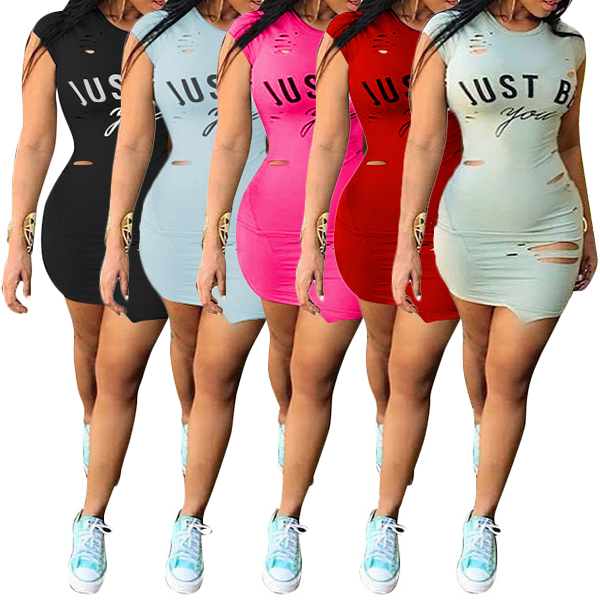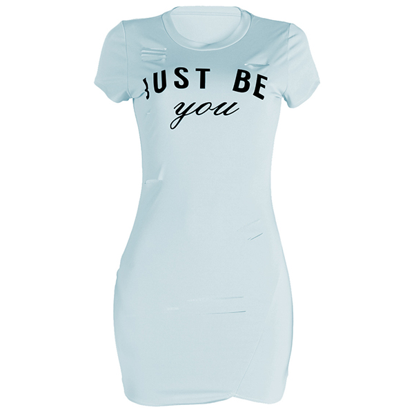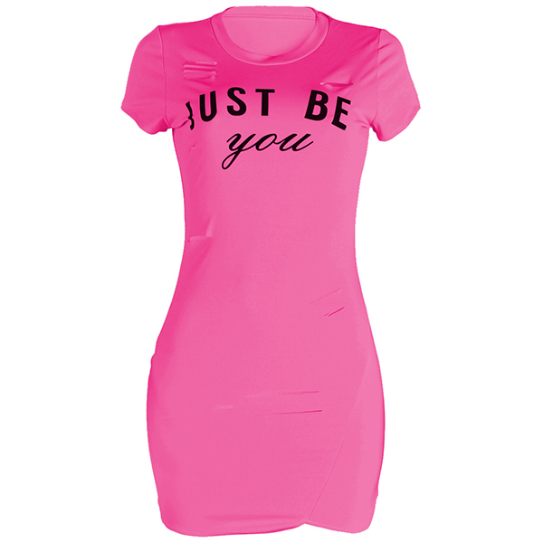 Showcase your chic street style through this dress. Letters printed style,designed with short sleeve,round neck and a