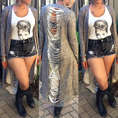 open-front closure and a maxi length,chic and stylish. Backside with ripped details make it more distinctive. Matching