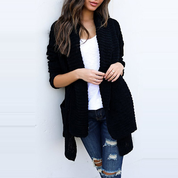 Attracted by this knit cardigan thanks to its chic and unique design style? Then introduce it to your team. Solid color style,