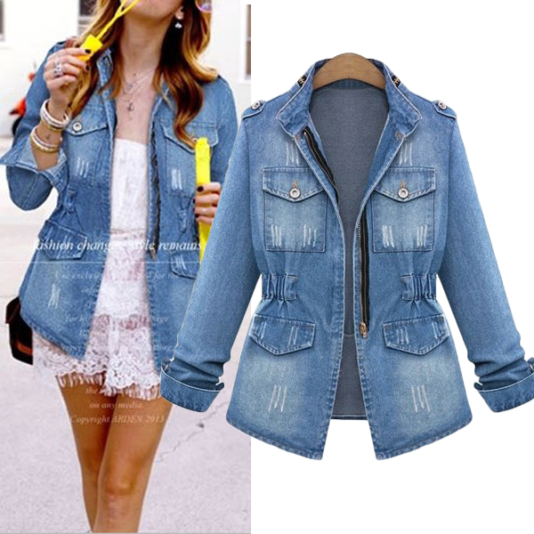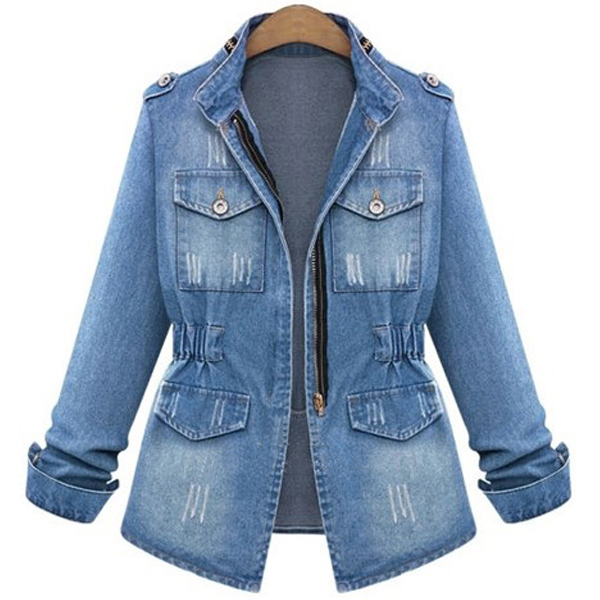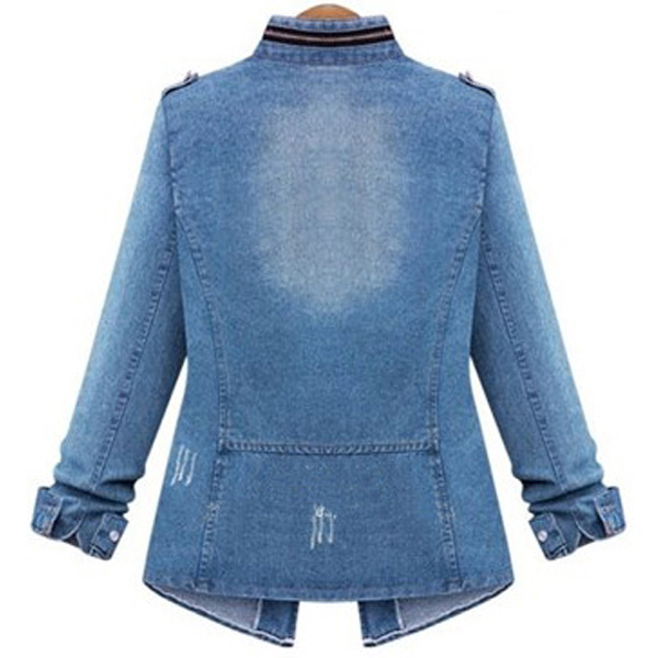 The chic faded and ripped details further highlight its charm. Let this denim coat showcase your fashion taste!