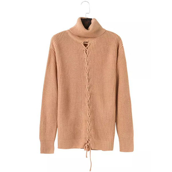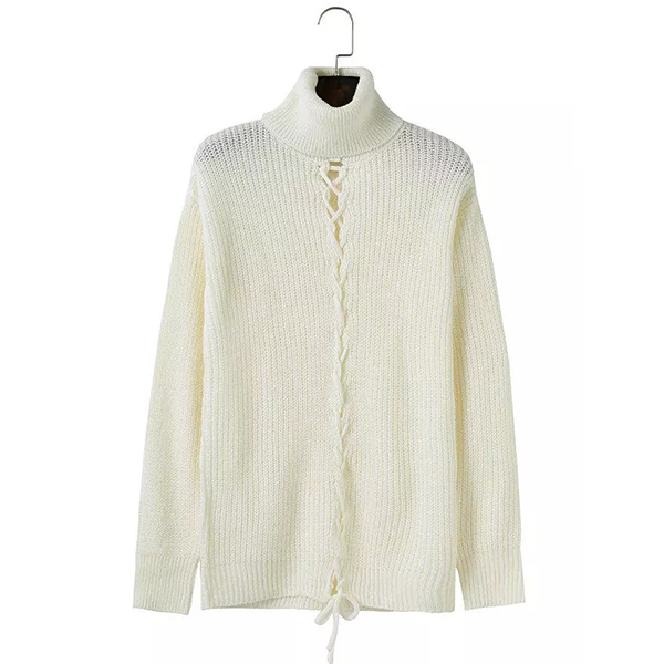 Its classic design like long sleeve,turtleneck and unique detail like lace-up design at back side create this distinctive