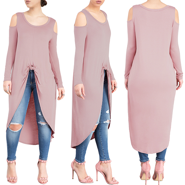 round neck and its unique design like off-shoulder and knotted hem make this piece so distinctive. On the other hand,