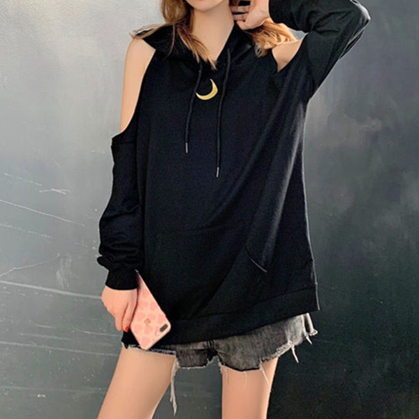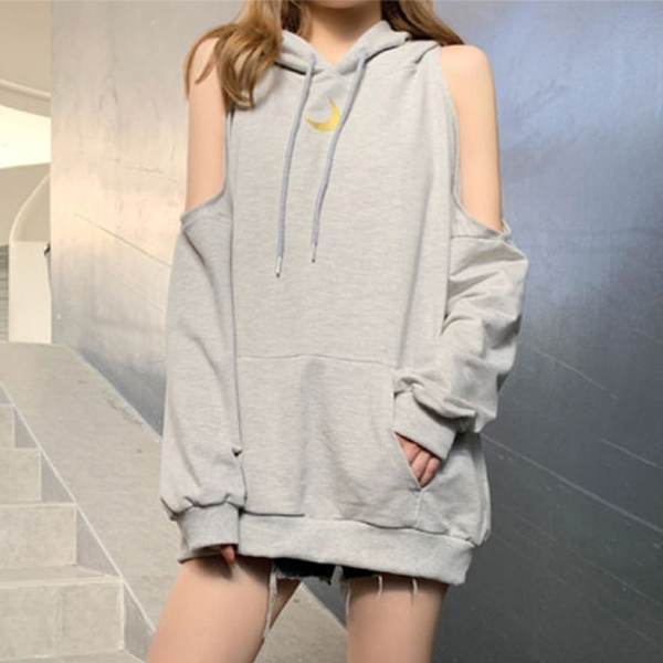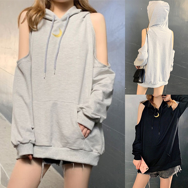 This hoodie which is designed in a chic and unique design style can easily arouse more attention. Solid color style,off-shoulder design can lend you a dash of sexy flavor,while its soft,breathable fabric can loose silhouette can ensure you a comfortable day. Like this style? Then invite it to your wardrobe ensemble!