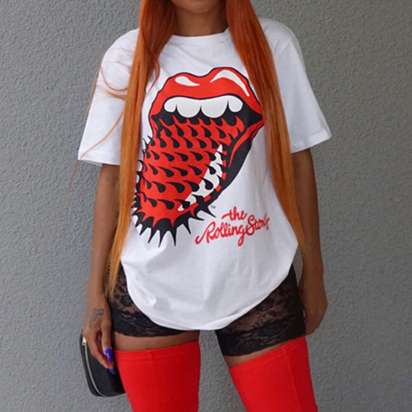 round neck and a relaxed-fit silhouette,this t-shirt is sure to keep you comfy all day. Moreover,its tongue printed pattern lends