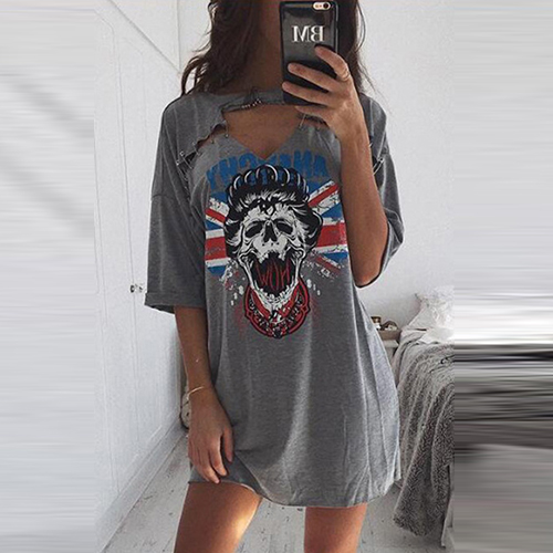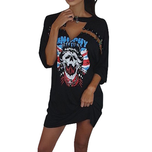 Have you ever seen such a chic and unique dress? Features skull head printed pattern,decorated with pins making it look