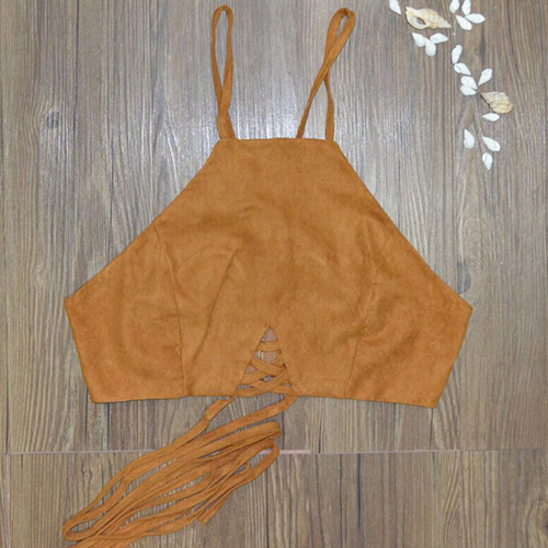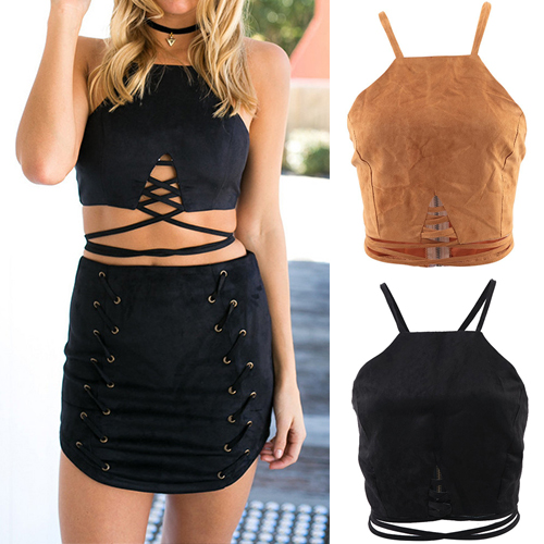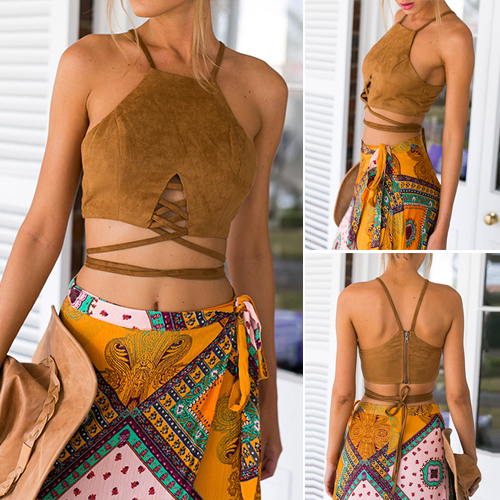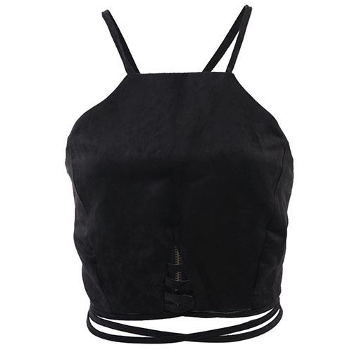 This crop top is sleeveless while it features a crisscross cutout accent at the front and a self-tie crisscross