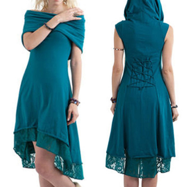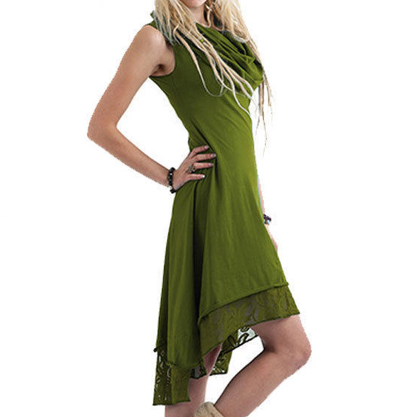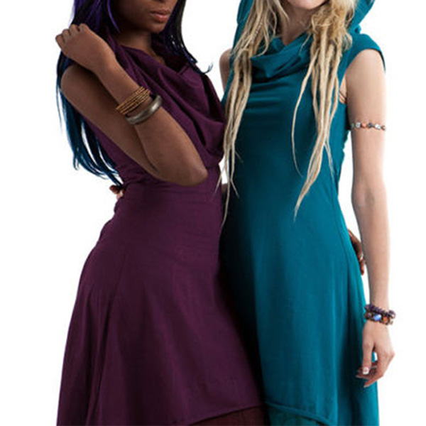 This dress is a good way to help you win more eyes. Solid color style,comes with sleeveless,hooded and an irregular hem,