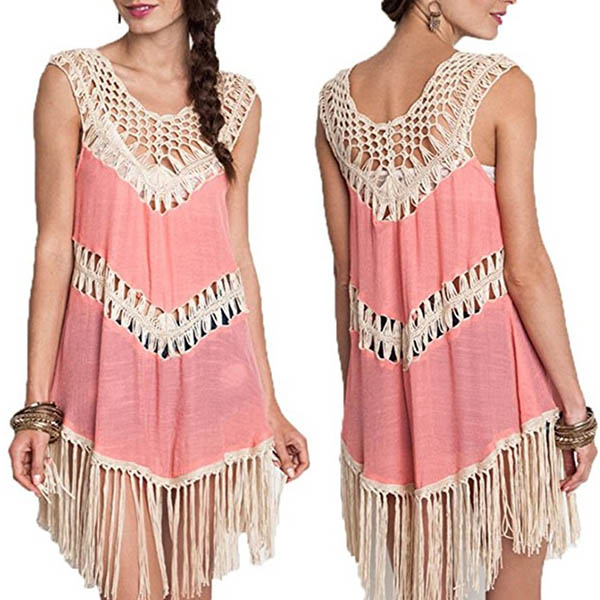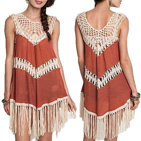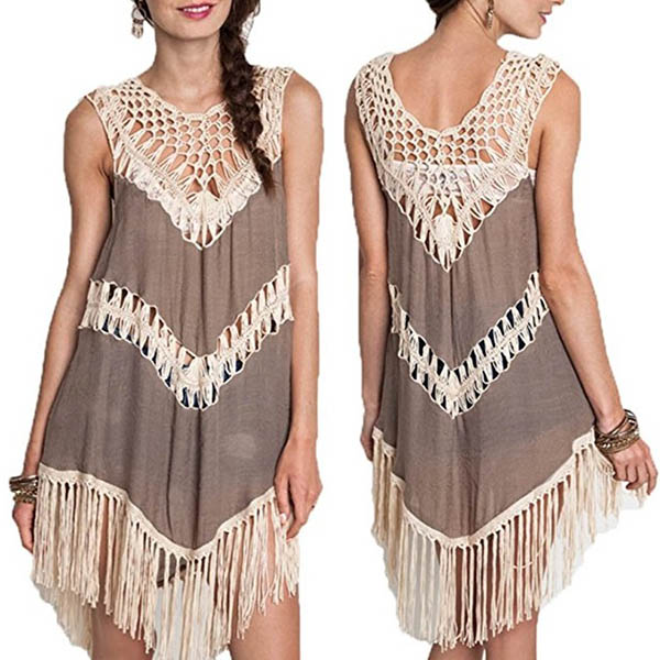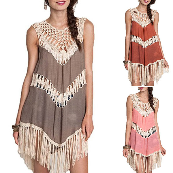 Chic Style Sleeveless Round Neck Irregular Tassel Hem Dress