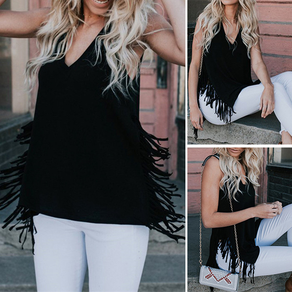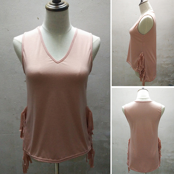 v-neck and irregular tassel hem,this top not only can give you a stylish look,but also can ensure you a comfortable