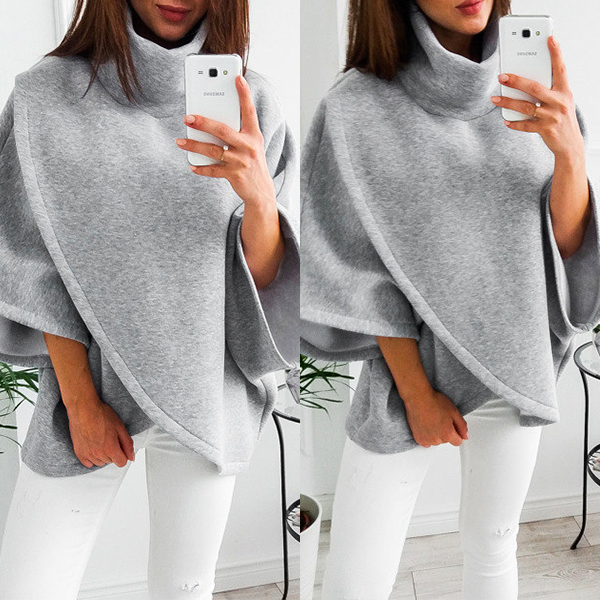 Only need one glance,you would be attracted by this chic and unique sweatshirt. Cloak-style design,finished with