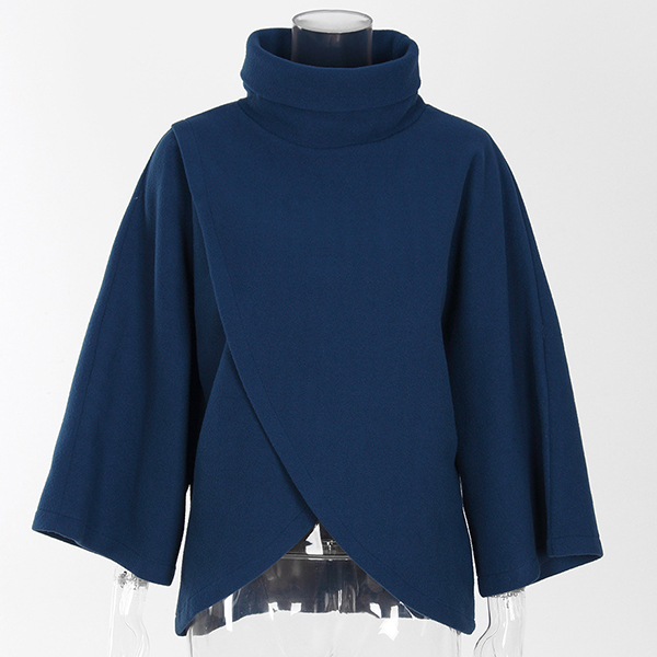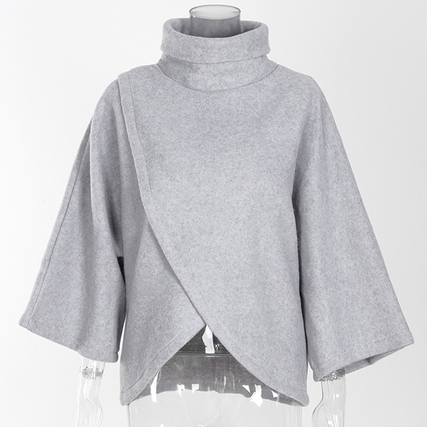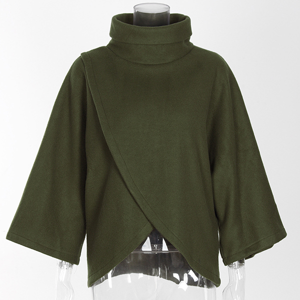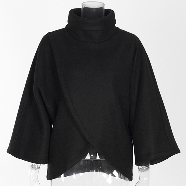 Chic Style Solid Color High Neck Irregular Hem Cloak-style Sweatshirt